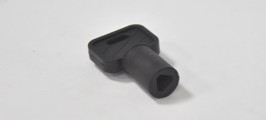 Чтобы разблокировать привод, когда отсутствует электричество, нужно нажать пальцем на алюминиевую крышечку, дальше вставить пластиковый треугольный ключик и повернуть его.
