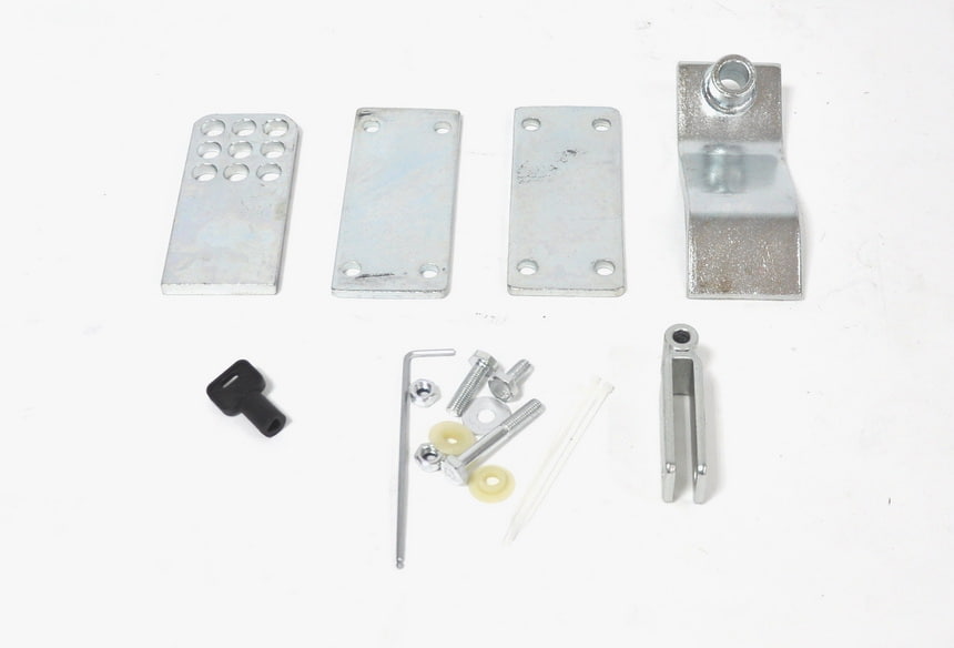 Ключ для ручной разблокировки, как и комплект кронштейнов для крепления приводов к створке и несущим колоннам, поставляется в комплекте.